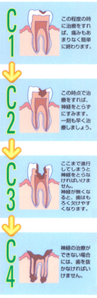 C1、C2、C3、C4というのは虫歯の進行度合いを表す言葉です。